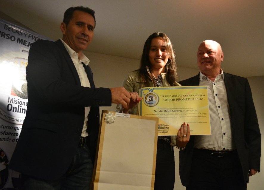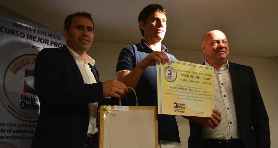 Uno de los ganadores de la categoría del Concurso Mejor Promedio fue el estudiante  Gustavo Zacarías,  quien cursó el 2do año de la Tecnicatura Superior en Higiene y Seguridad,  en el Instituto Tecnológico Provincial N°2, en Corpus, con promedio 10. Por empate resultó finalista con la estudiante Natalia Belén Sarasua, que estudia el Profesorado en la Enseñanza Primaria en el Instituto Superior de Formación Docente Continua “Cainguas”, en Aristóbulo del Valle.