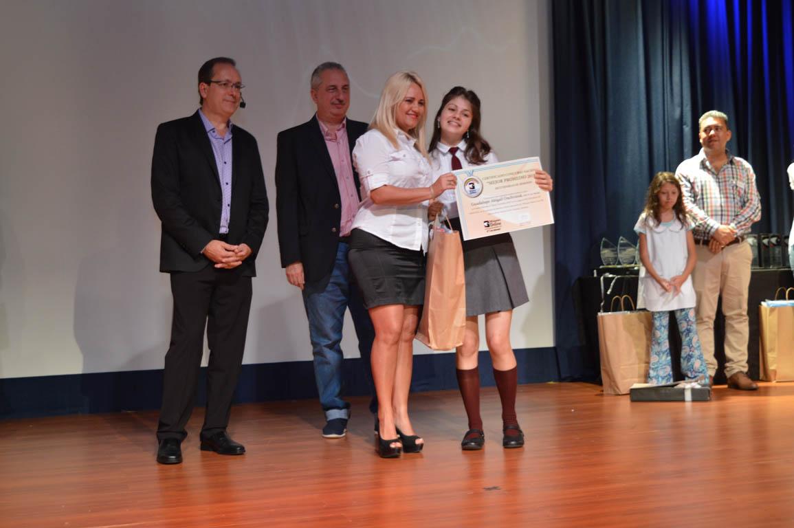 La joven es una de los 14 estudiantes ganadores del Concurso Mejor Promedio 2018, organizado por Misiones Online con el apoyo de empresas e instituciones. La entrega del certificado estuvo a cargo del gobernador de Misiones, Hugo Passalacqua. La beca de 30 mil pesos fue entregada por la presidente de la Cámara de Mujeres Empresarias de Misiones (CAMEM), Celia Kosachik.